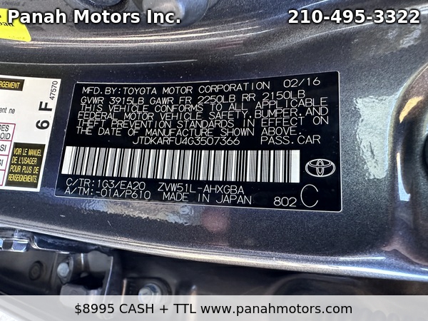 Your message: Hello, my name is and I'm writing you today to learn more about the 2016 Toyota Prius Four listed for $8,995.00. I live in the area and I would like to hear back from you soon and learn more about this vehicle. Please call me at at your earliest convenience.