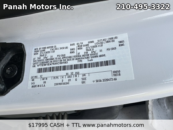 Your message: Hello, my name is and I'm writing you today to learn more about the 2019 Ford F-150 XLT SuperCrew 4WD listed for $17,995.00. I live in the area and I would like to hear back from you soon and learn more about this vehicle. Please call me at at your earliest convenience.